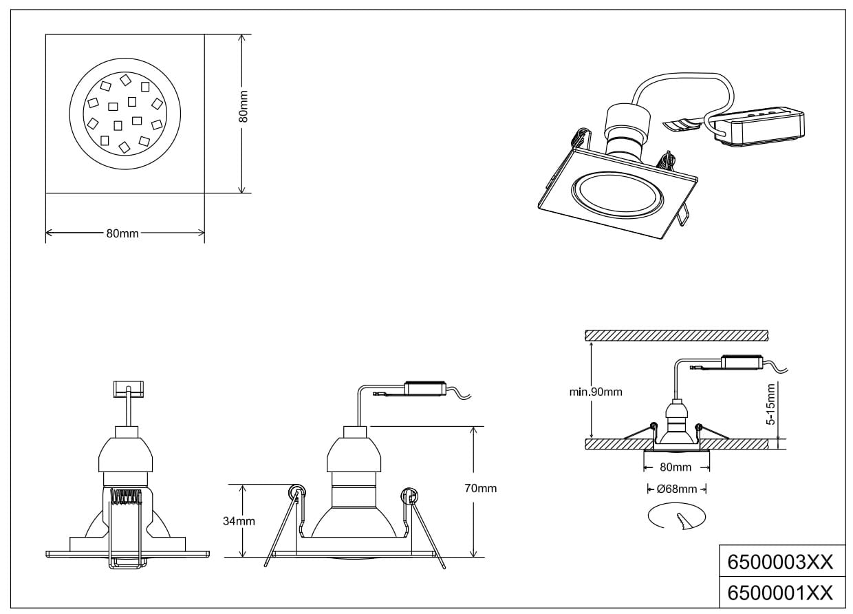 TRIO Jura zápustné svietidlo GU10 1x15W - štvorec, matná čiernaSkladom4,50 EUR/ ks3,66 EUR bez DPH